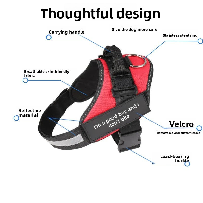 The vest-style structure helps distribute pressure evenly across the chest and shoulders, reducing strain on the neck and preventing choking, making it a safer alternative to traditional collars. Integrated reflective elements improve visibility in low-light conditions, adding an extra layer of safety during early morning or evening walks.